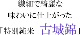 旨味と幅のしっかりした味わいの酒米古城錦を使用した純