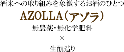 「松の司」の貯蔵・熟成については、総ての光を遮断した上で、ラベル表示が生酒・生詰のものは摂氏5度以下、それら以外の表示(火入れ酒)のものは摂氏15度以下で貯蔵されています。(蔵元資料より抜粋) 『松の司』の酒米への取り組みを象徴する商品のひとつがこの”AZOLLA(アゾラ)シリーズ”です。”AZOLLA”を通じて表現したい思いは「自然」。原料米は栽培期間中無農薬・無化学肥料で栽培された地元竜王町産の山田錦を使用しています。「無農薬・無化学肥料」と書けばたった10文字足らずですが、契約栽培農家の方々の大変な手間と努力の上に成り立っています。