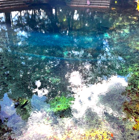 石灰岩層の自然濾過により青緑色に澄み、地下水循環を