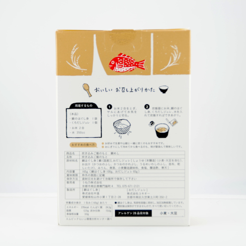 | 製品名: | うね乃 炊き込みご飯のもと‐鯛めし‐ |